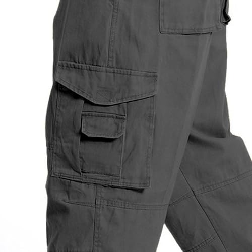 HOT ! Men's Baggy Cargo Pants Cotton Elastic Waist Cargo Pants Twill Wide Leg Casual Loose Fit Trousers with Pocket
