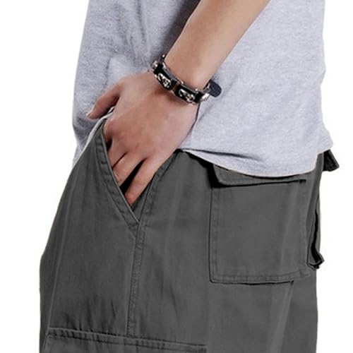 Men's Baggy Cargo Pants Cotton Elastic Waist Cargo Pants Twill Wide Leg Casual Loose Fit Trousers with Pocket 5