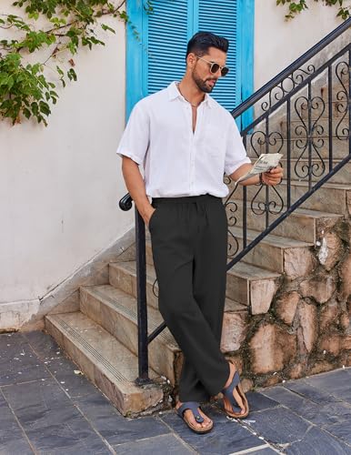 COOFANDY Men's Casual Linen Pants Loose Fit Elastic Waist Drawstring Lightweight Pant Summer Beach Trousers 5
