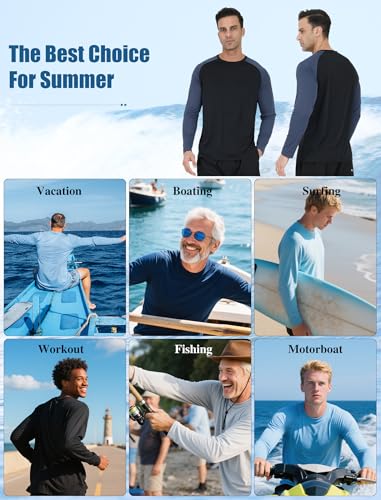• Breathable & Moisture Wicking: Made from premium, lightweight, breathable fabric, these long sleeve rash guards ensure great air circulation, actively wicking moisture away from the skin and keeping you cool on hot days