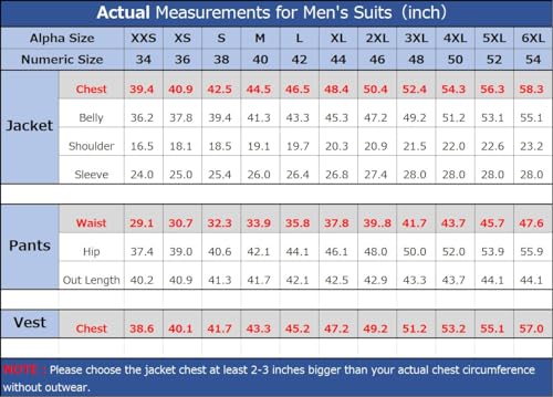 • 【Size】--XXS≈34, XS≈36, S≈38, M≈40, L≈42, XL≈44, XXL≈46, 3XL≈48, 4XL≈50, 5XL≈52. Please check the size chart carefully. If the size chart doesn't fit you,. You can send us your height, weight, cost conference, and wait conference, we can customize this suit.