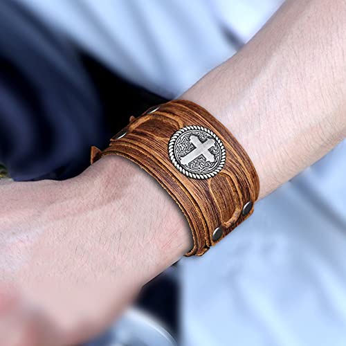 NIGHTCRUZ Wide Leather Bracelet with Cross, Medieval Leather Cuff Wristband for Mens 5