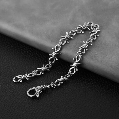 HZMAN Barbed Wire Bracelet for Men Biker Gothic Punk Stainless Steel Link Bracelet Jewelry Gift 7