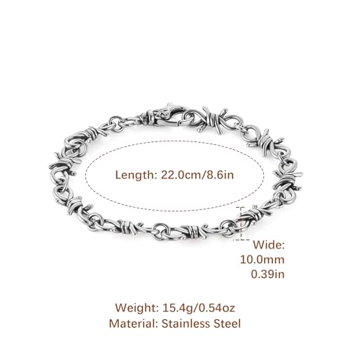 HZMAN Barbed Wire Bracelet for Men Biker Gothic Punk Stainless Steel Link Bracelet Jewelry Gift 6