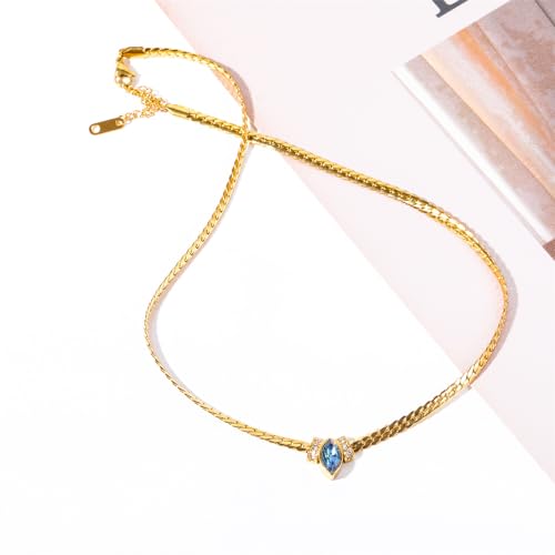 • Ratro-Vintage DESIGN: All eyes will be on your wearing this snake bone chain featuring a sparkling colorful Marquise zircon center, decorated with little white zircons. This Marquise Zircon choker could be worn from day to night, looks dainty layered with other chokers to creat your own unique style.