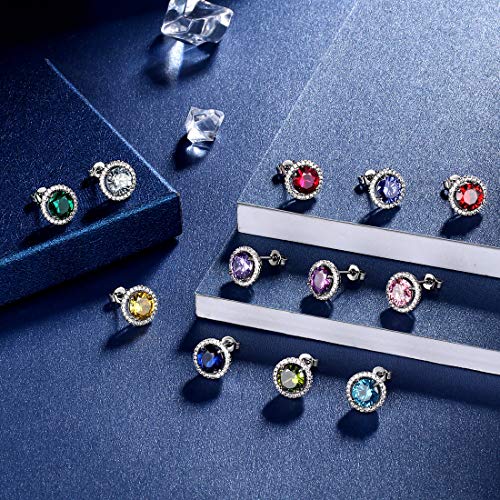beautlace Birthstone Necklaces/Stud Earrings/Rings/Bracelets/Jewelry Sets Silver Plated Round Shape Birthstone Pendant Jewelry Birthday Gifts for Men and Women 6