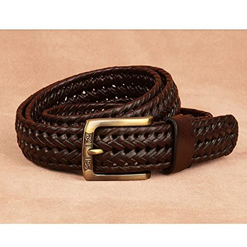 Men's Belts,Men's Fashion Vintage Perforated Casual Braid-Weave Belt with Classic Buckle,Brown,110CM/43.3'' 6