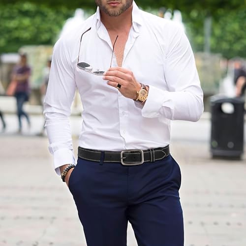 Men’s Faux-Leather Belt with Single Prong Buckle Casual Every Day Belt for Jeans 7