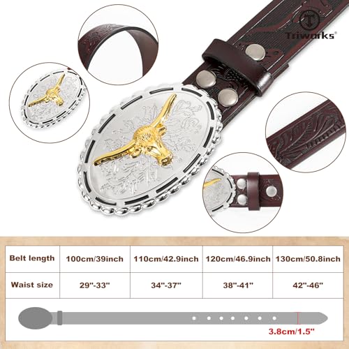 • Western Belt for Men Women: This men cowboy belt is made of leather material, respectively carved embossed flower pattern long bull and feather pattern, Bull Buckle Leather Belts full of western cowboy style, classic fashion. Western belts for men are choice for people who want to try Western clothing and accessories. Cowboy belts for men women are practical and a great addition to men's and women's wardrobes.