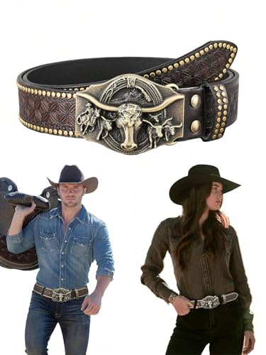 • Western Cowboy Design: The womren men western belt is designed with bull head,with exquisite embossed flower patterns and surrounded by two rows of rivets ,classic and eye catching,showing your charms and western feelings, making you stand out in the crowd.