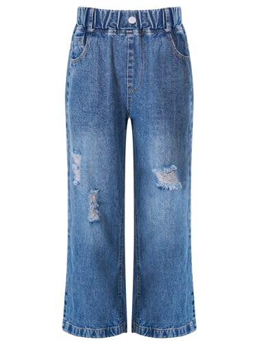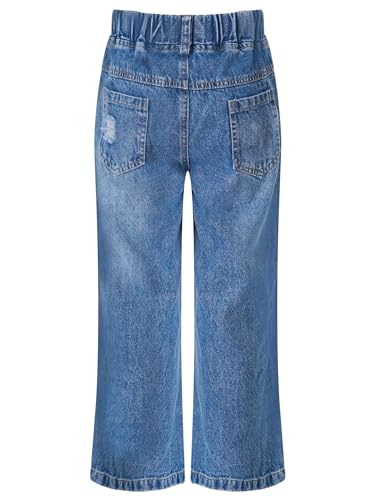 Girls Casual Loose Elastic Waistband Ripped Jeans Denim Cropped Trousers with Pockets Distressed Jeans 6