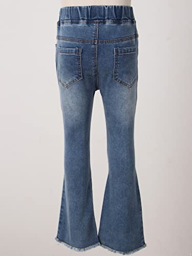 FEESHOW Girls Kids Tassel Irregular Hem Flare Jeans Bell Bottom Youth Vintage High Waist Fitted Stretchy Denim Pants 6