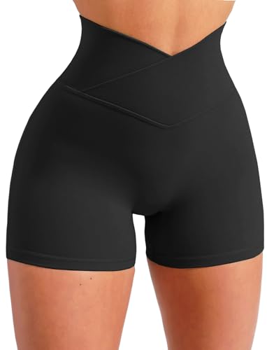• Black Workout Athletic Gym Shorts for Women: Tummy control crossover high waisted scrunch butt lifting squat proof,cute compression booty shorts for going out,cycling,yoga,city walk,running,hiking,fitness,summer vacation,rave or casual lounge wear