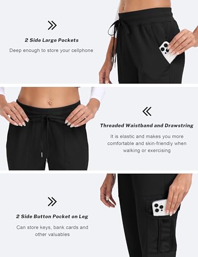 • Water Resistant, 4 Way Stretch: Women Fleece Lined Cargo Joggers Pants Slightly Water Resistant, the water resistant effect resists light rain in a short time, keeping you dry in every light rain or snow day; The elastic fabric is incredibly flexible and stretch, allowing you to stay comfortable and move without restriction.