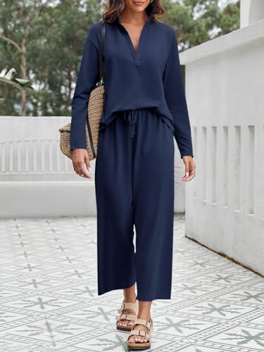 • Feature: Super stylish 2 piece outfits comes with long sleeve v neck pullover tops & wide leg drawstring sweatpant, cropped length, loose fit, creating a casual and active silhouette