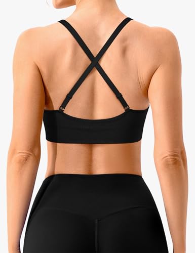 V-Neck Sports Bra for Women Adjustable Strappy Yoga Bra Spaghetti Strap Padded Workout Bra S-XL Low Impact Seamless Bralettes 5