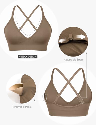 V-Neck Sports Bra for Women Adjustable Strappy Yoga Bra Spaghetti Strap Padded Workout Bra S-XL Low Impact Seamless Bralettes 3