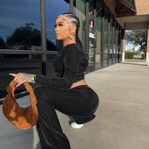 yidengymx Womens 2 Piece Velour Tracksuit Two Piece Outfits for Women Long Sleeve Zip Up Crop Tops Sweatpants Sets Pockets 2