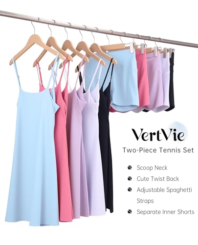 HOT ! Vertvie Womens Two Pieces Tennis Dress with Separate Shorts Workout Open Back Active Golf Dresses Built-in Removable Bra