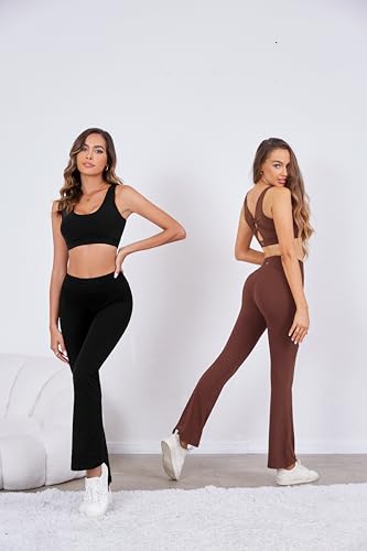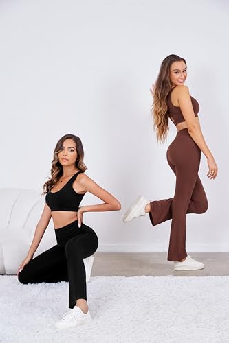 • [ High Waist Cut & Seamless ]: The high waist cut of these flare leggings offers extra support and helps contour your midsection. With no visible seams, you can enjoy a seamless and flattering look.