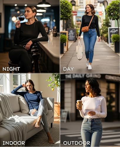 Womens Ultra Soft Midweight Baselayer Top | All Season Thermal Scoop Neck Long Sleeve Shirt | Multi Packs 4