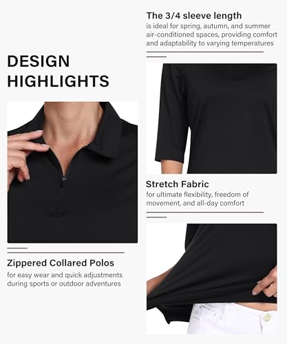 MoFiz 3/4 Short Sleeve Golf Shirt for Women Quick Dry Quarter Zip Athletic Polo Shirts Lightweight Workout Casual Tops 1