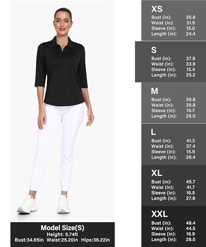 HOT ! MoFiz 3/4 Short Sleeve Golf Shirt for Women Quick Dry Quarter Zip Athletic Polo Shirts Lightweight Workout Casual Tops