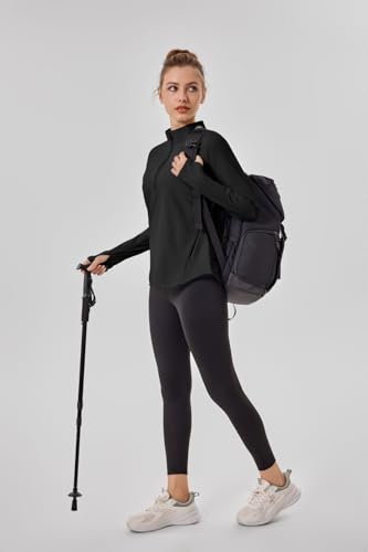 Womens 1/4 Half Zip Hiking Shirts SPF Sun Protection Tops with Pocket Long Sleeve Athletic Running Golf Pullover 1
