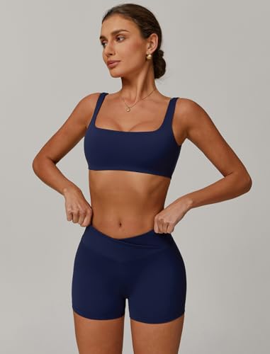 Two Piece Workout Sets for Women Square Neck Sports Bra and Scrunch Butt Lifting Shorts Gym Yoga Active Wear Outfits 2