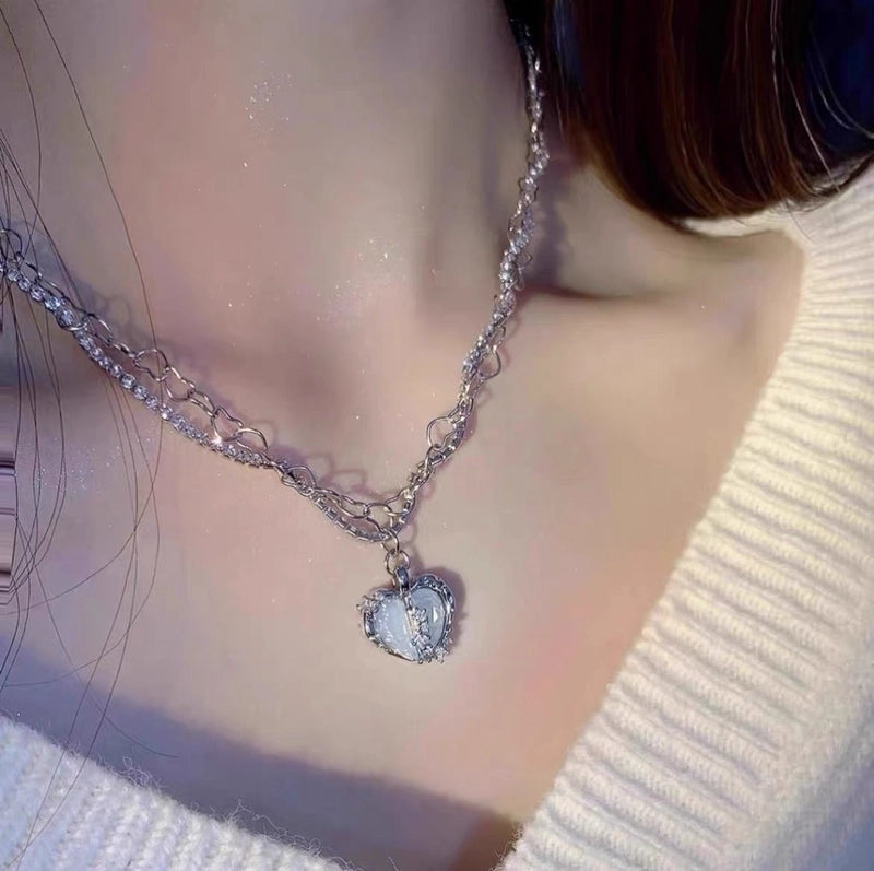 Lady Sweet Heart Shape Flower Fish Tail Imitation Pearl Alloy Inlay Rhinestones Women's Necklace 8