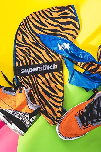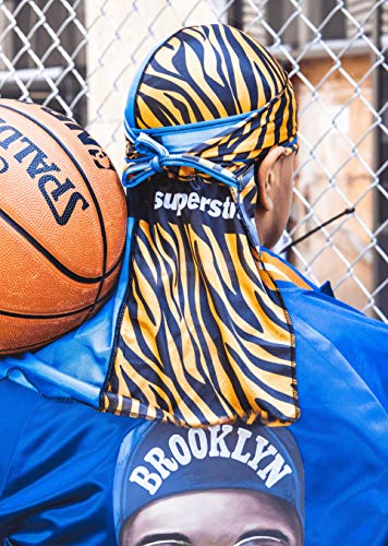 HOT ! Superstitch Supersilky Ultra Silky Durag x Wavebuilder | 30+ Styles Premium Designer Durags for Men | 360 Waves |Blue and Tiger Print (Tie of the Tiger)