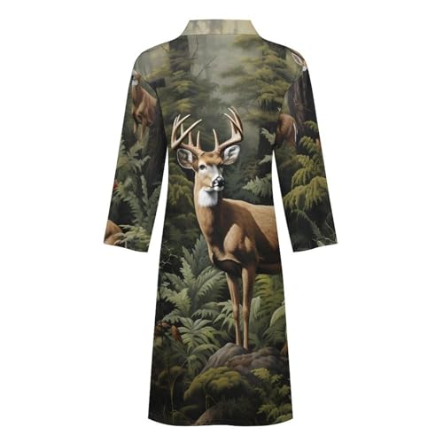 Tree Camo Deer Mens Nightgown Lightweight Knee Long Bath Robe Spa Bathrobe Loungewear 1