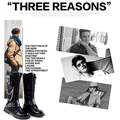 Men's Fashion Punk Motorcycle Boots Retro Metal Chain Lace Up Mid-Calf Boots 6