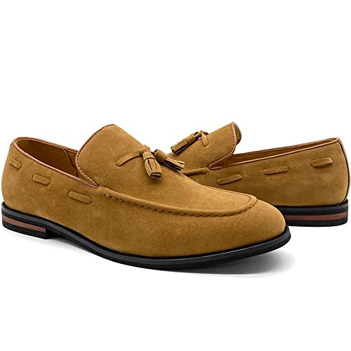 CMM Men's Suede Slippers Loafers Dress Shoes with Tassel Flats Slip-on Prom Loafer 5