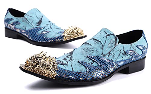 Santimon Mens Dress Shoes Genuine Leather Metal Pointed Dragon Tip Tuxedo Business Formal Composite Loafers 7