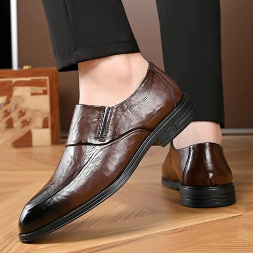 Mens Retro Leather Slip On Dress Loafers Classic Low Heels Pointed Toe Penny Shoes for Formal Business Wedding Office (Brown,Black) 6