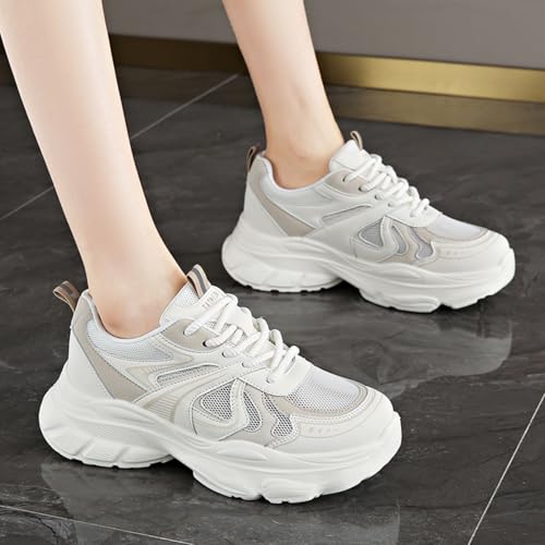 HOT ! Chunky Sneakers for Women Fashion Platform Leather Casual Dad Shoes with Height - Increasing Feature Comfortable Wedge Walking Sport Sneakers (White,6)