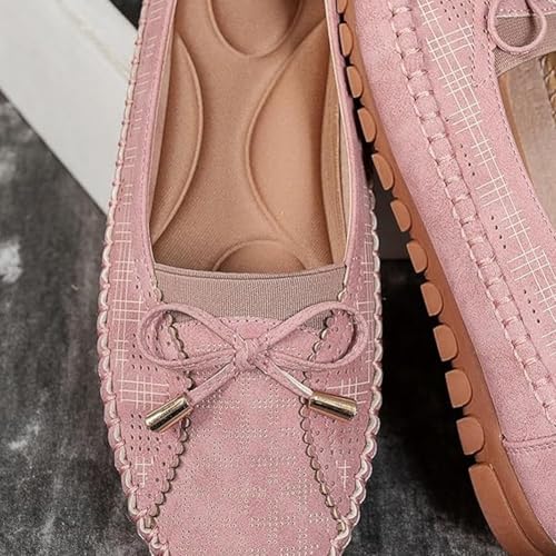 Curvahouse Orthopedic Leather Shoes, Lightweight Anti-Slip Breathable, Ressy Slip-On Bow-Knot Round Toe Flats Loafers 7