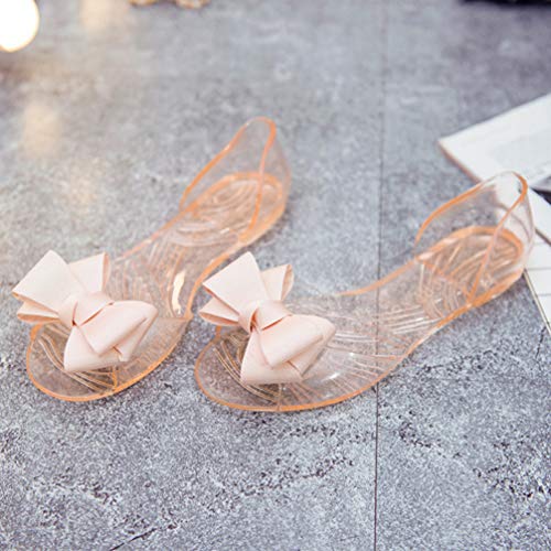 Women Jelly Shoes Bowknot Sandals Flat Summer Beach Footwear Fashionable and Comfortable for Daily Wear for Dresses and Pants Beige 6