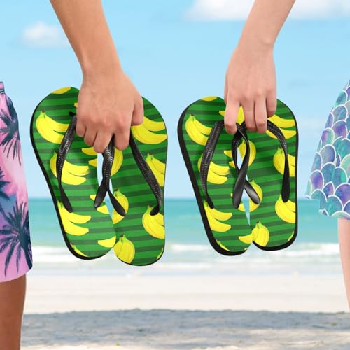 Sinestour Banana Green Stipe Flip Flops for Beach Thong Sandals Anti-slip Lightweight Flat Slippers for House Indoor Outdoor 1