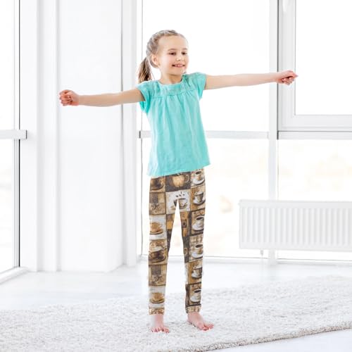 Coffee Picture Patchwork Girls Casual Leggings for Kids Printed Long Pant Bottoms Stretch and Soft 4