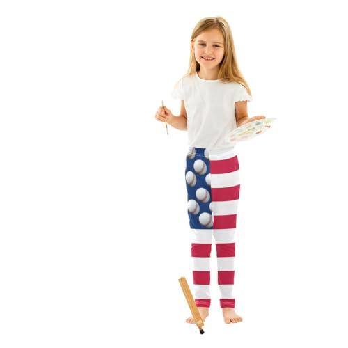 American Flag Baseball Girls Casual Leggings for Kids Printed Long Pant Bottoms Stretch and Soft 7