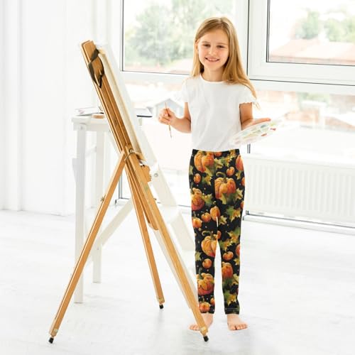 Orange Pumpkin Green Leaf Girls Leggings Soft Stretch Workout Yoga Dance Pants for Kids Casual Tights 6