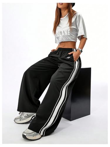 HOT ! Floerns Women's Elastic Waist Side Striped Track Pants Baggy Wide Leg Hip Hop Pants