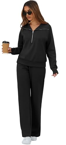 GRECERELLE Lounge Sets For Women 2025 Casual Lapel Half Zip Sweatshirt And Wide Leg Sweatpant 2 Piece Outfits Tracksuit Sets 1