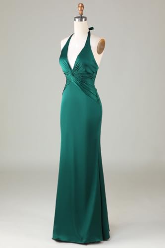 HOT ! Fokissy V Neck Satin Bridesmaid Dresses for Women Ruched Long Mermaid Backless Prom Dresses