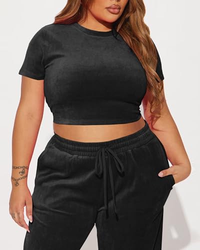 • 【Fashion Design】Round neck short sleeve navel-baring top design, looks more fashionable and generous. The velour tracksuit womens has good thermal insulation performance, which can keep you warm during morning runs in autumn. The elastic waist velvet sports pants are equipped with decorative drawstrings and two side pockets, which are more convenient and easier to wear. The womens sweatsuits 2 piece set wide-leg design creates a stylish and dynamic look.