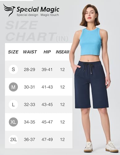 SPECIALMAGIC Bermuda Shorts for Women 12" Sweat Cotton Athletic Sports Workout Below Knee Shorts with Pockets 1