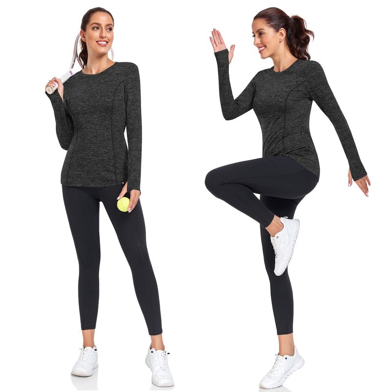 • 【Running Shirts with Thumb Holes】Lightweight, quick-drying and features thumbholes design. Not only do these thumb holes keep the sleeves in place during exercise, but they also provide extra warmth for the back of the hand and wrist.