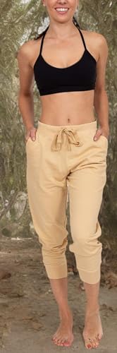• GREAT CONSTRUCTION & FUNCTION :Hi Waisted Self Fabric Cotton Elastic Flex Drawstring Waistband | 2 Side Vented Pockets | Open Relaxed Flexible Spandex Ankle Foot Openings stay were you want them